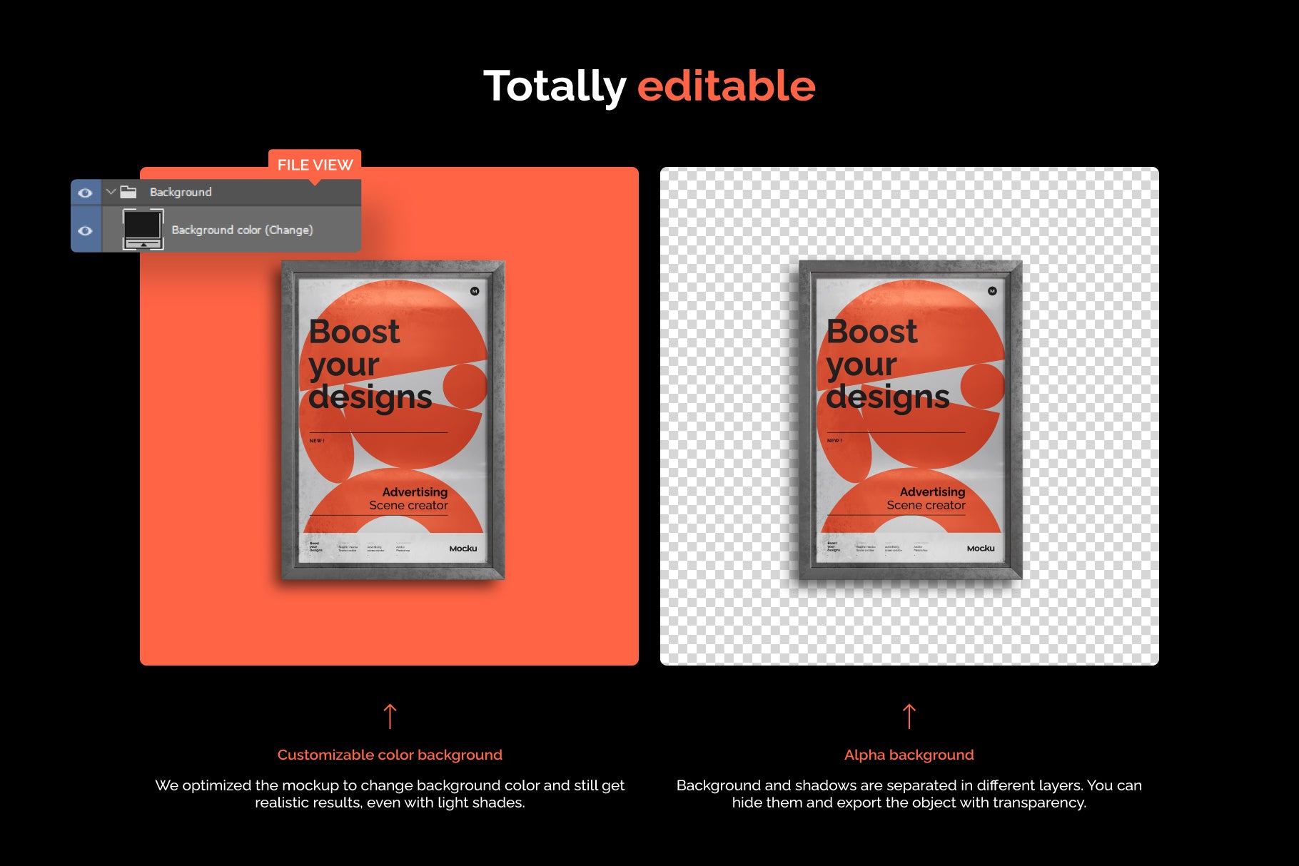 Unlike many mockups out there, ours are built for total creative freedom. Change and personalize every detail.