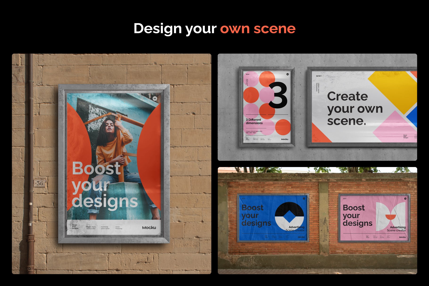 Showcase your designs professionally with this Billboard Mockups - Scene Creator. The mockup set includes multiple effects and assets to play with and create your own realistic scene.