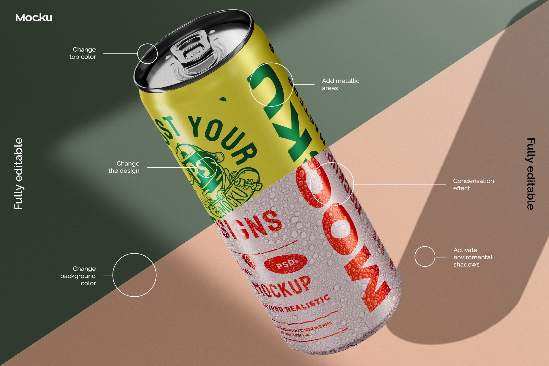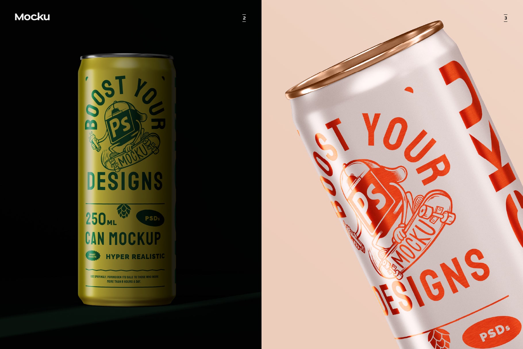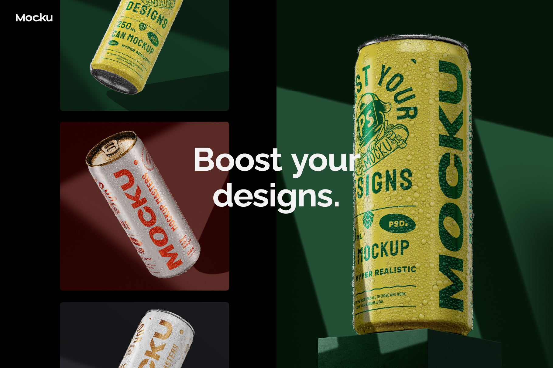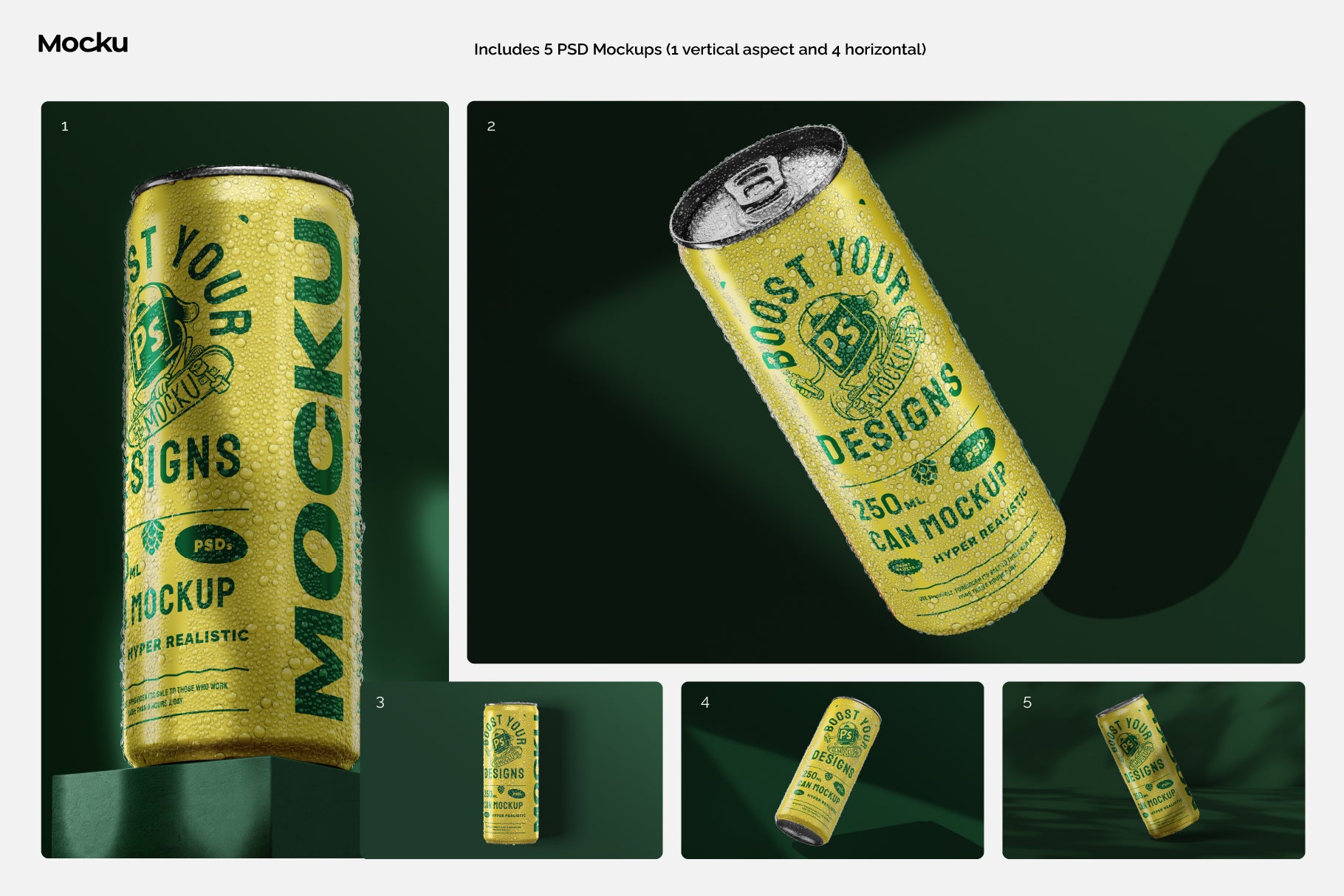The most realistic Can Mockups Pack – 250ml (8.4 oz) is here! Showcase your canned beverage designs in a professional and realistic manner. Our pack features a variety of high-quality mockups that allow you to display your designs on a 250ml can, ideal for beer, energy drinks, sodas, and other canned beverages.