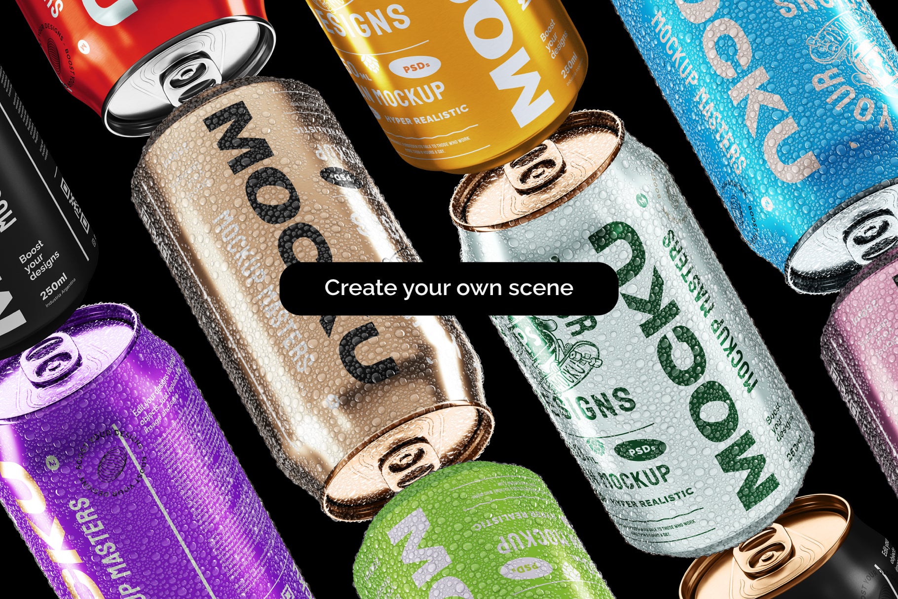 Explore the ultimate Can Mockup Pack – 355ml (12oz), crafted to elevate your canned beverage designs into professional, lifelike presentations.