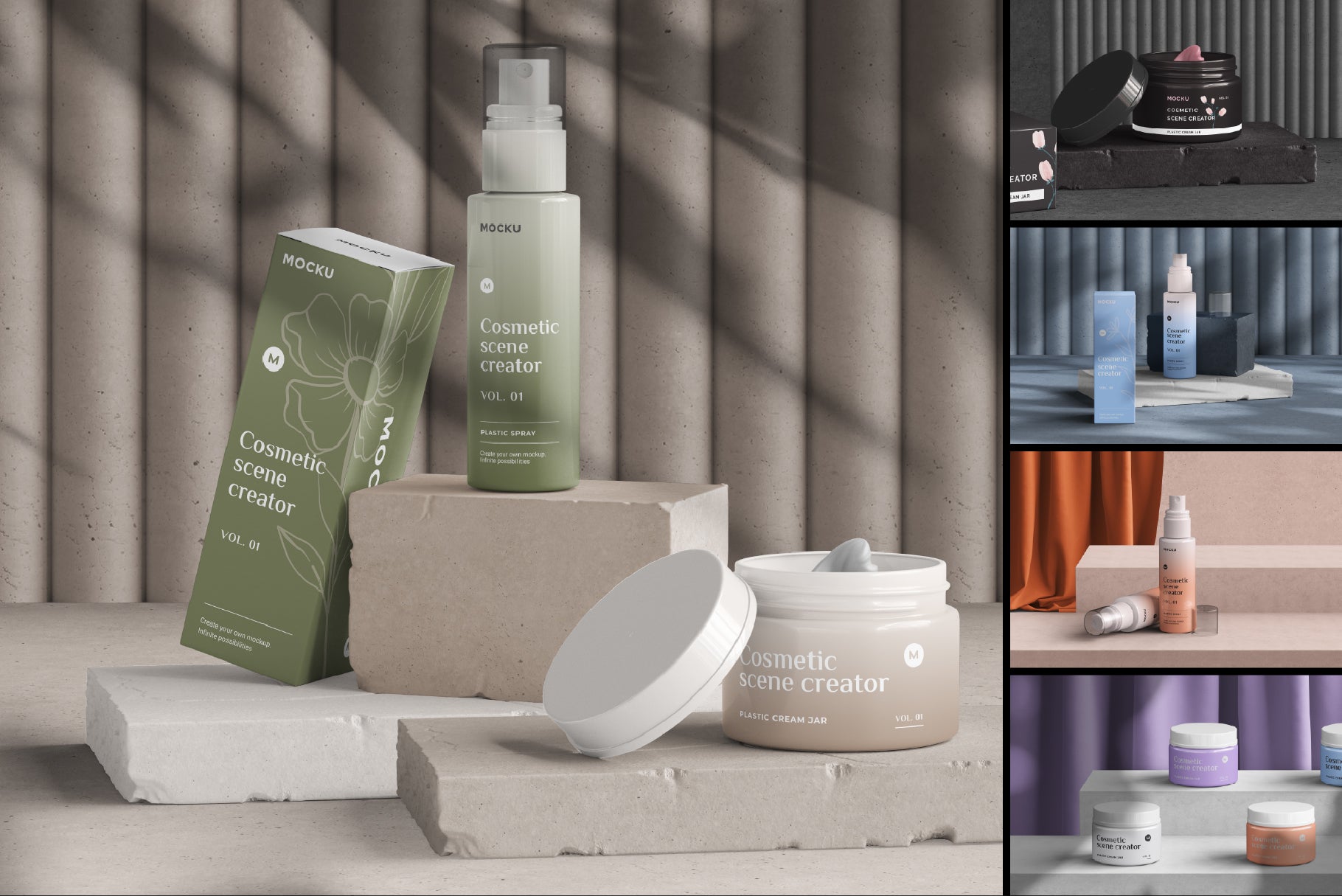 Our Cosmetic Scene Creator Mockup Bundle is the perfect solution for showcasing your cosmetic products stunningly and professionally.