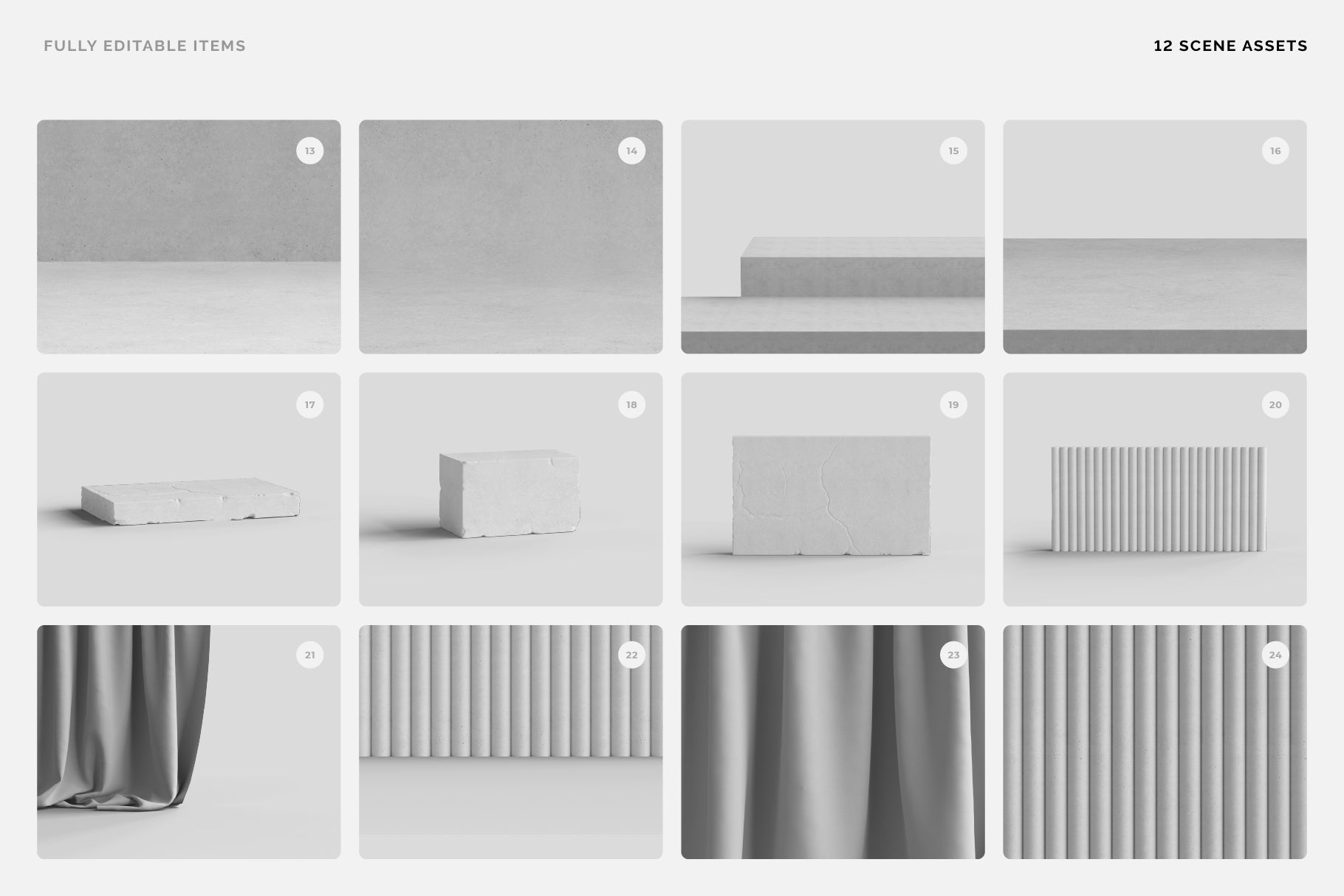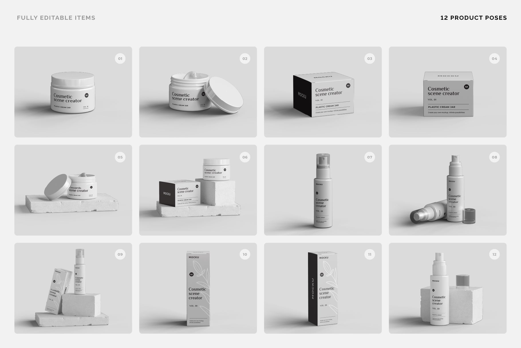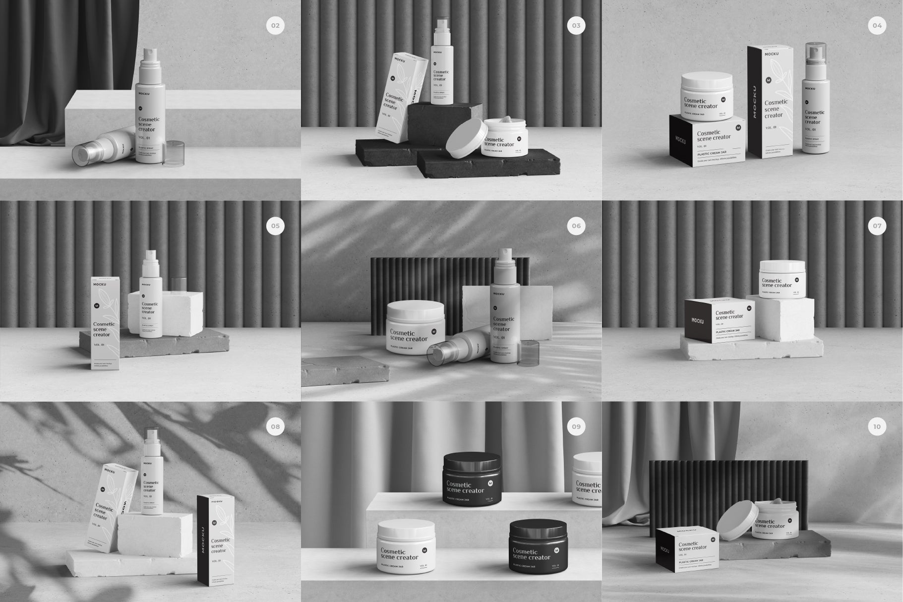This bundle includes a variety of high-quality mockups that allow you to create realistic and dynamic scenes featuring your cosmetic products.