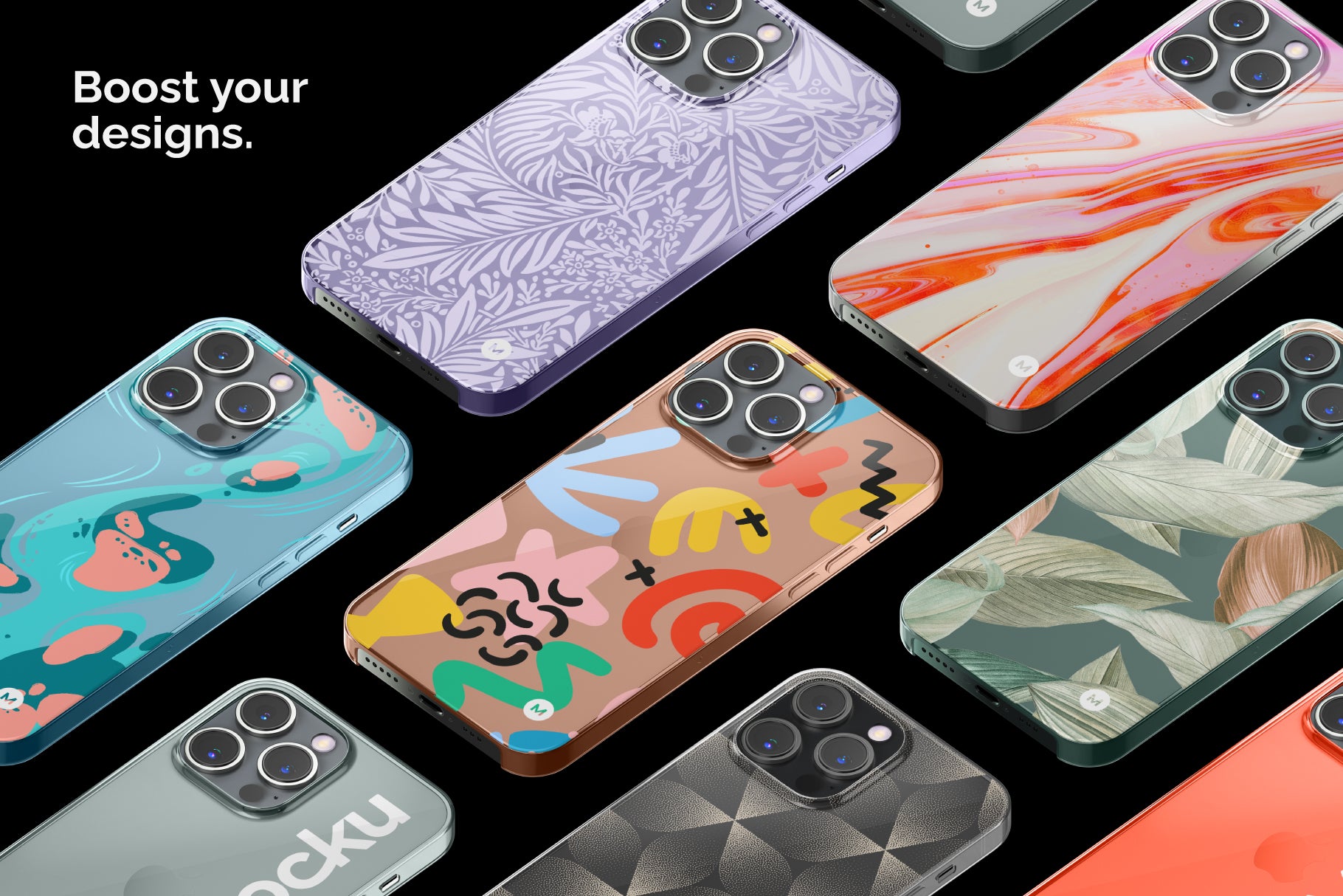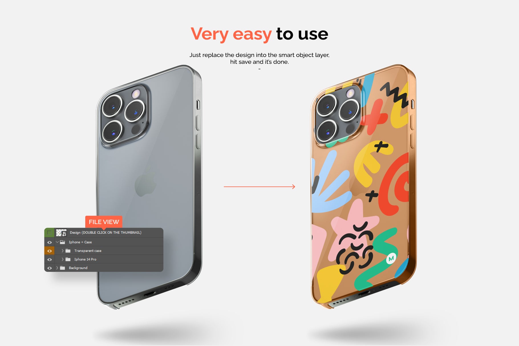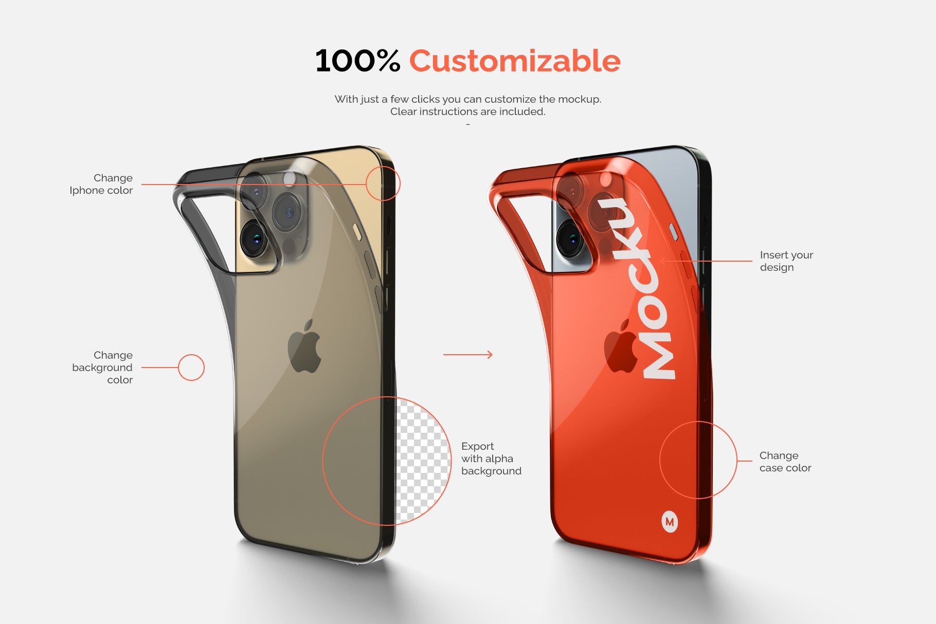 Showcase your iPhone 14 case designs professionally and stylishly with our iPhone 14 PRO Transparent Case Mockups.